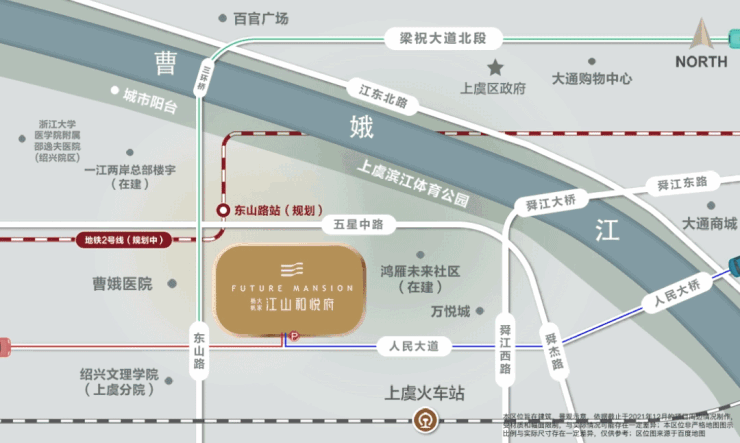 ➤从江山和悦府往北走,即可抵达城市阳台、曹娥江风景名胜区等。